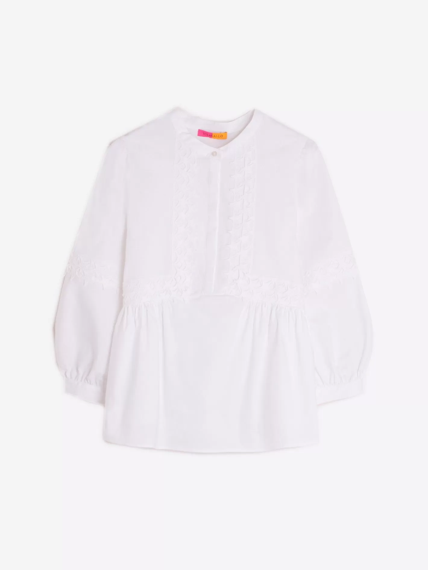 Camisa Blanca Estilo Romántico Con Bordados. Mangas Abullonadas. Tejido Exclusivo Vilagallo Confeccionado En España. L…