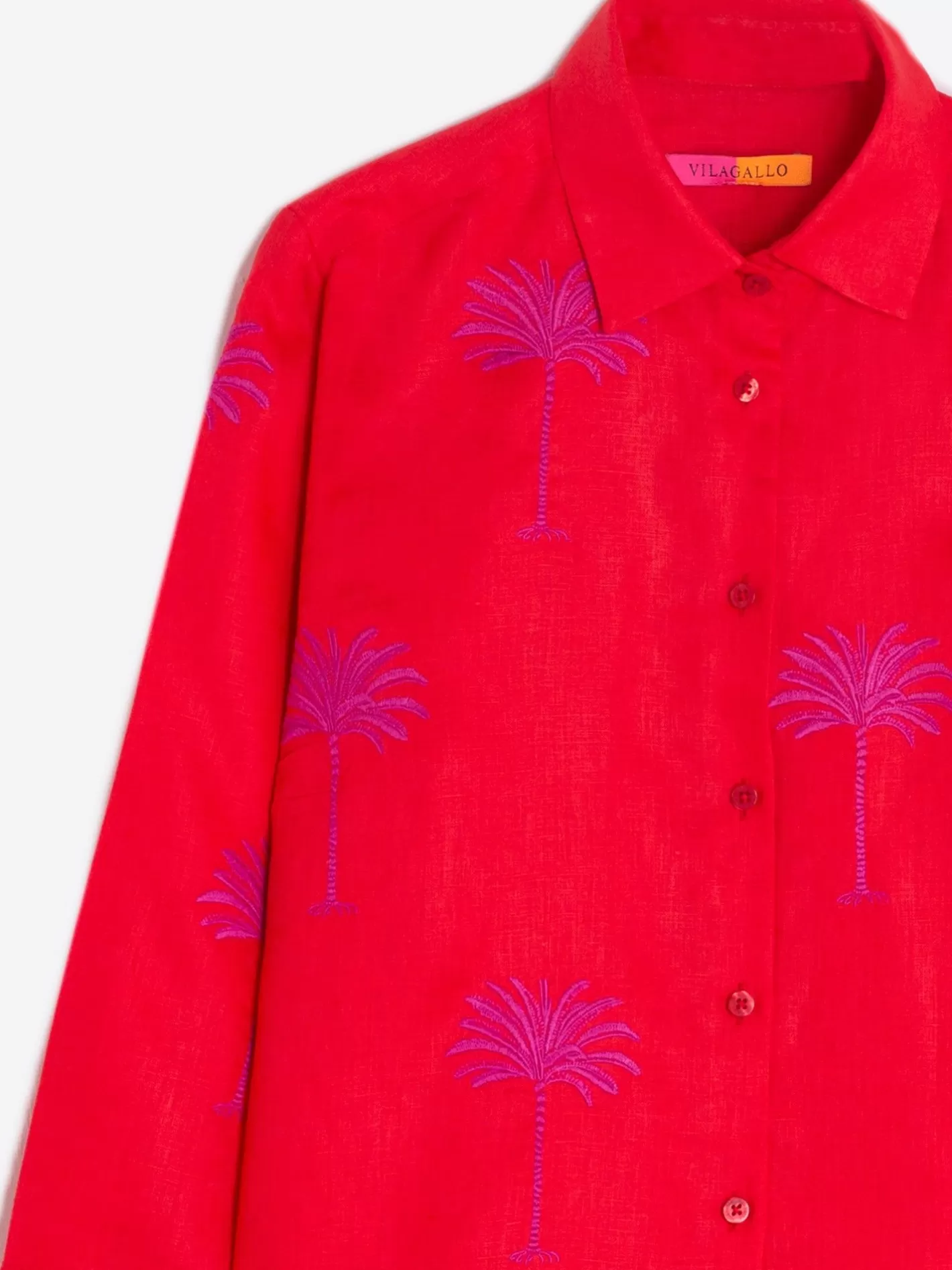 Camisas | Vilagallo Camisa Coral 100% Lino Bordado Palmeras