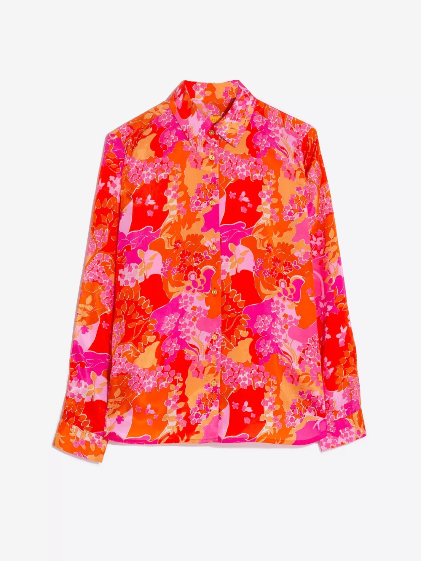 Camisa Estampada Floral En Tonos Rosas Y Naranjas. Mangas Abotonadas Y Y Corte Camisero. Tejido Exclusivo Vilagallo Conf…