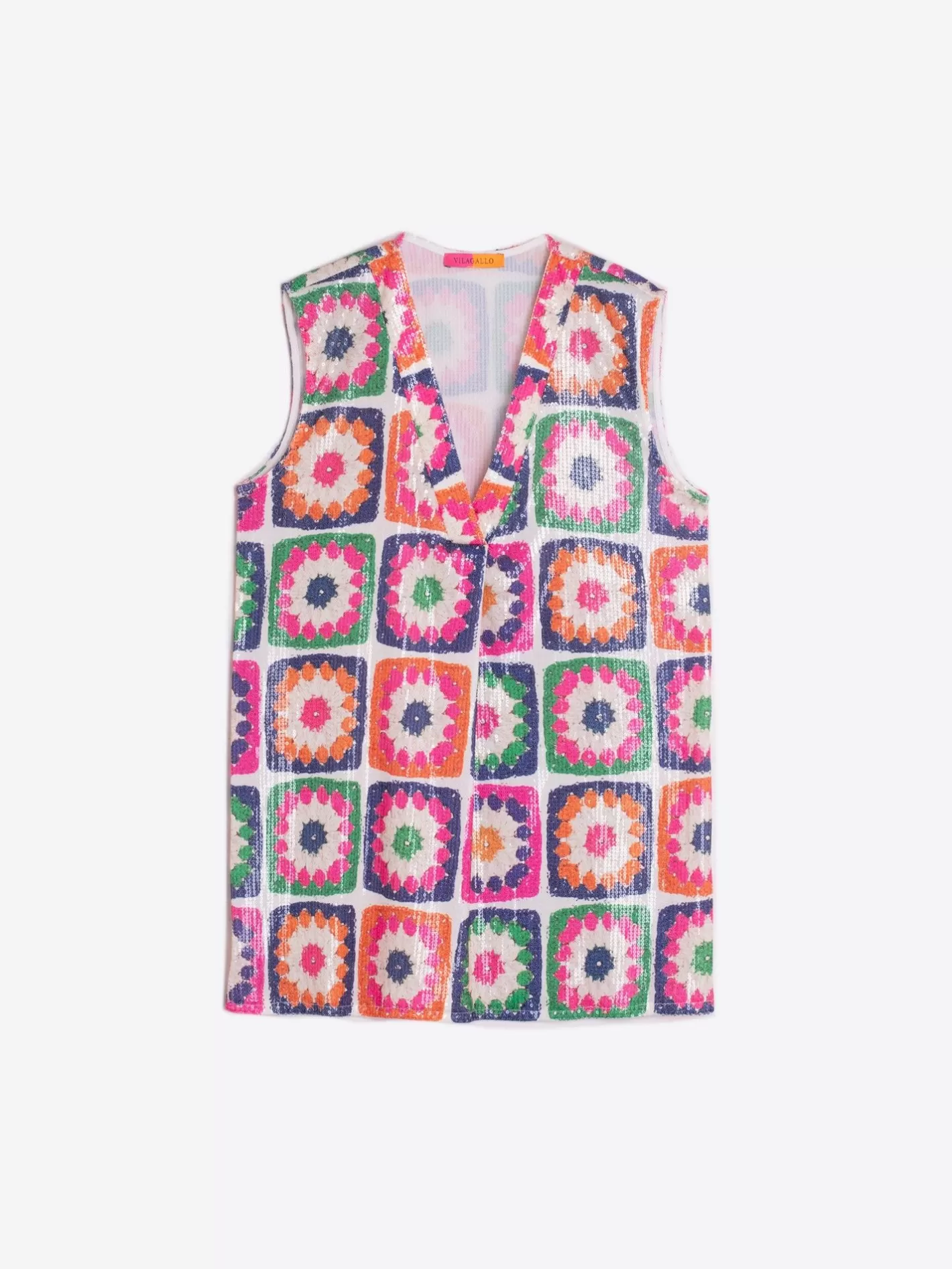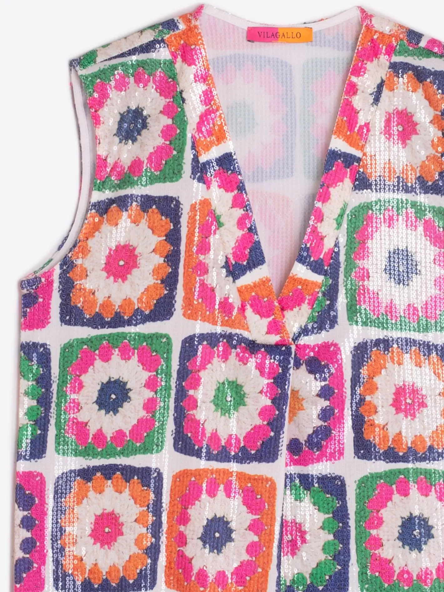 Camisa Con Estampado Simulando El Crochet. Cuello En Pico Y Sin Mangas. Tejido Exclusivo Vilagallo Confeccionado En Espa…