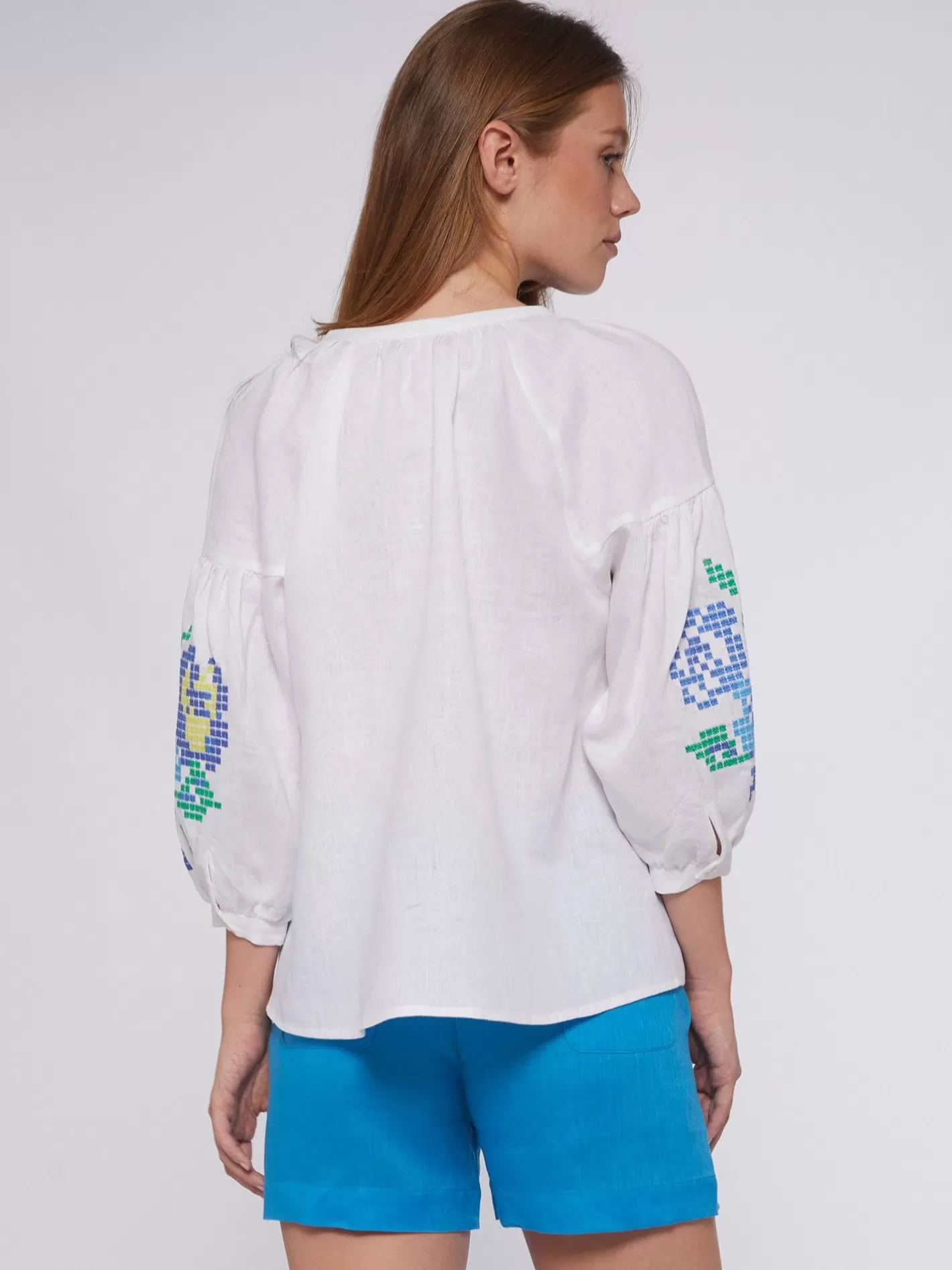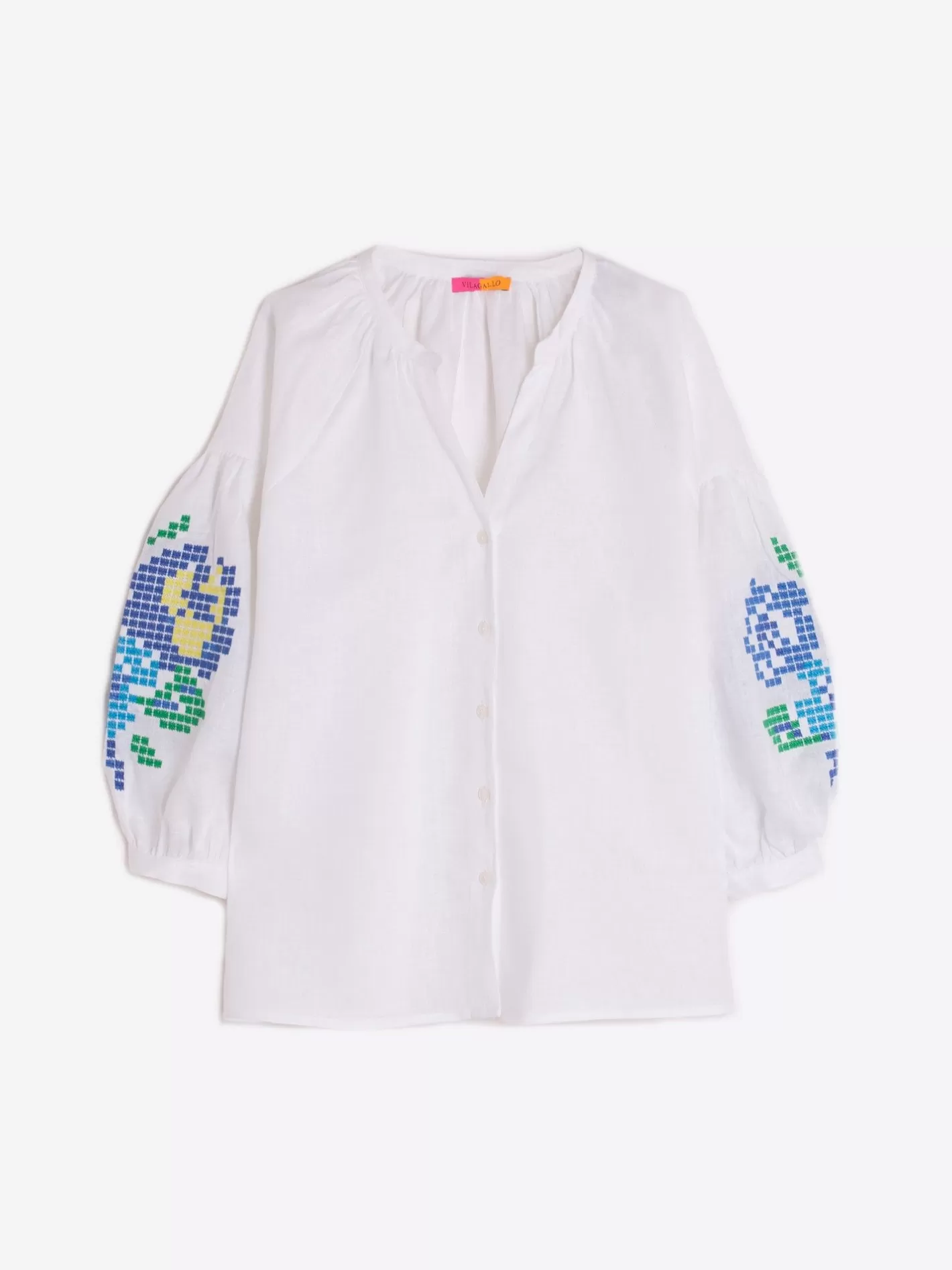 Camisas | Vilagallo Camisa Lino Mangas Bordadas Punto De Cruz