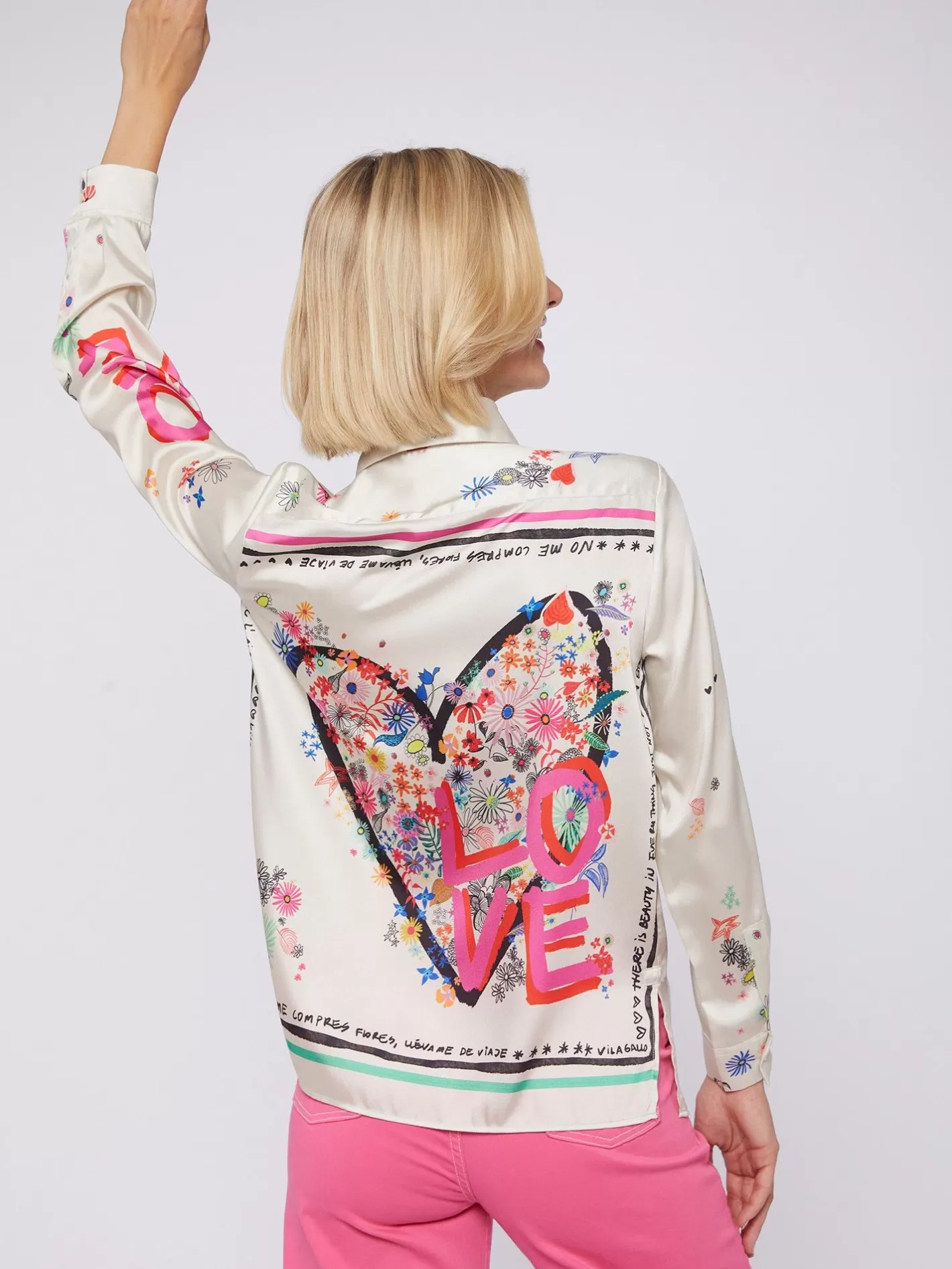 Camisa Estampada Inspiración Grafitti Con Motivos Florales. Palabra «Love» En La Manga Y En Espalda. DiseÑo Exclusivo Vilagallo Estampado En España.