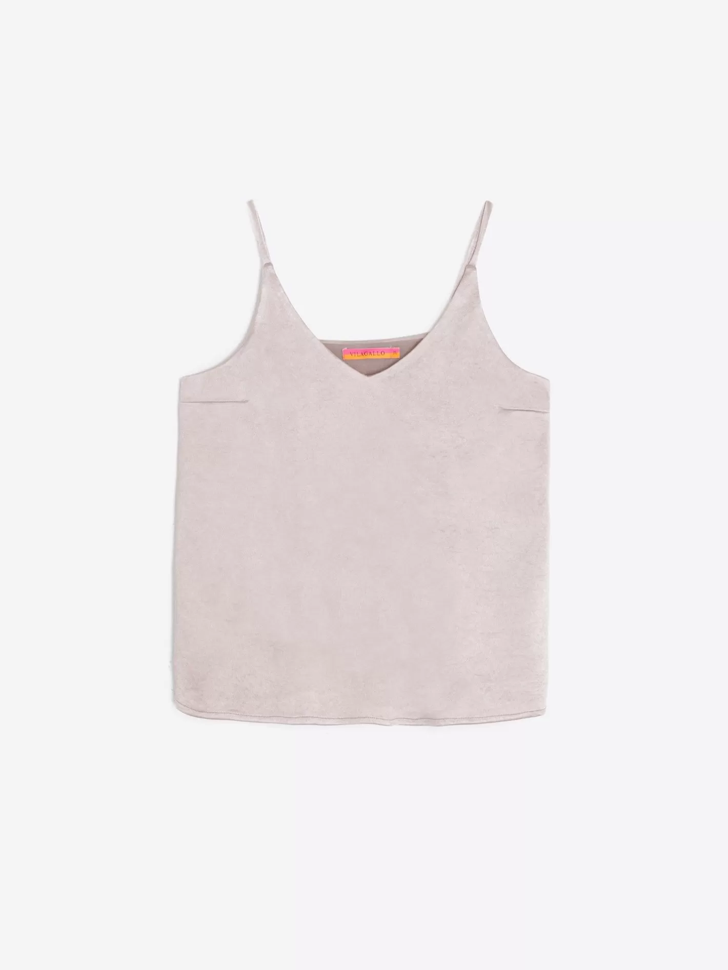 Camisa De Tirantes Beige. Tirante Fino Y Escote En Pico. Tejido Exclusivo Vilagallo Confeccionado En España. La Modelo …