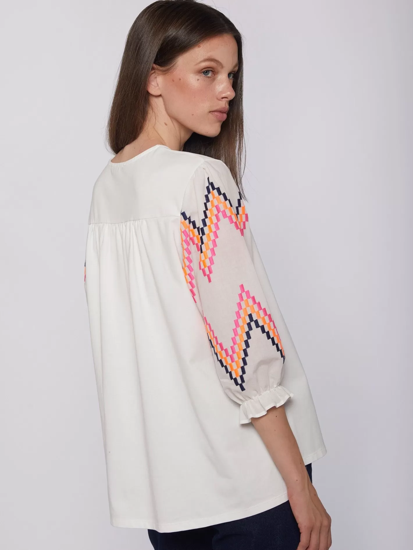 Camisetas | Vilagallo Camiseta Bordado En Mangas Zig-Zag