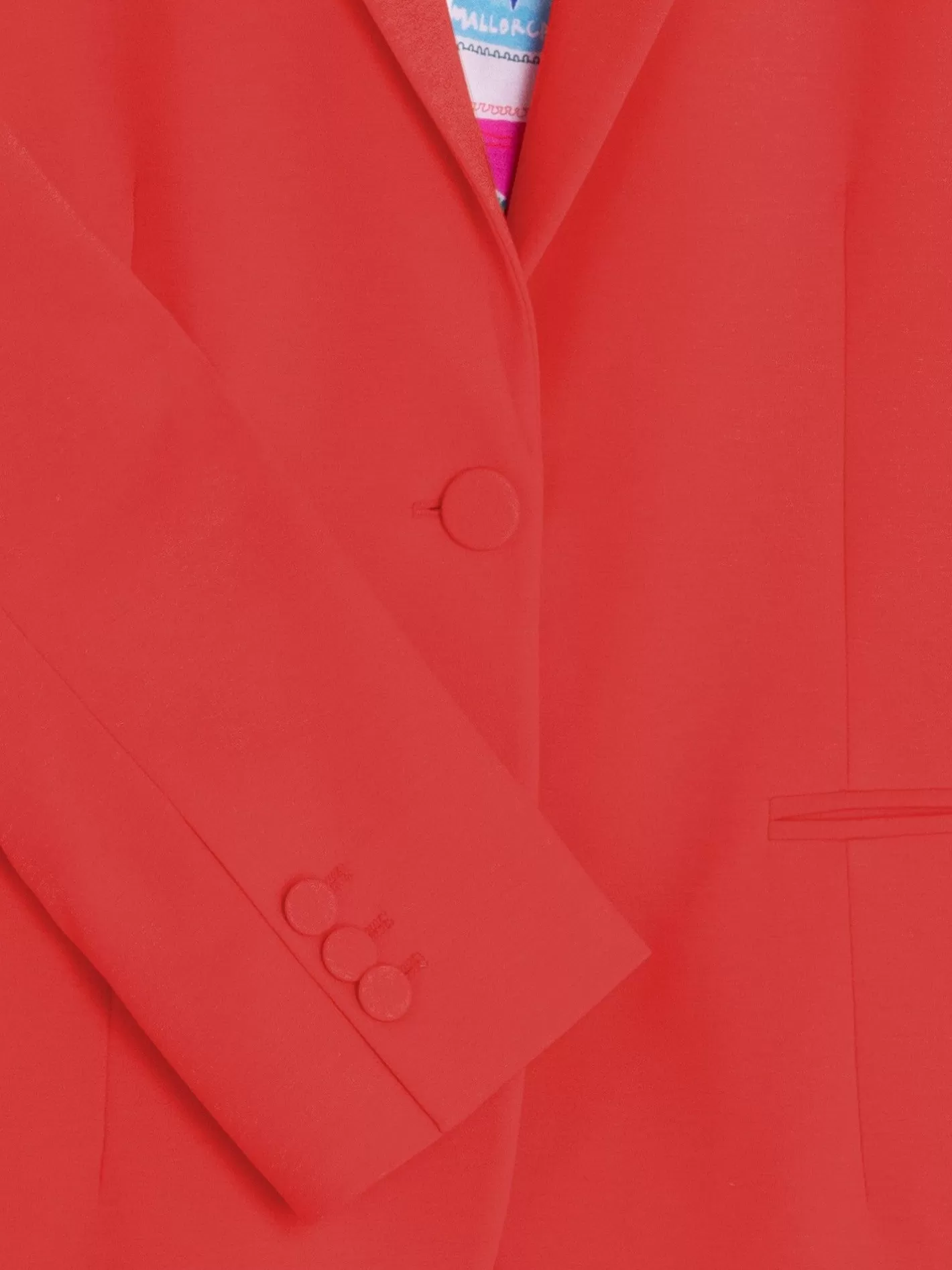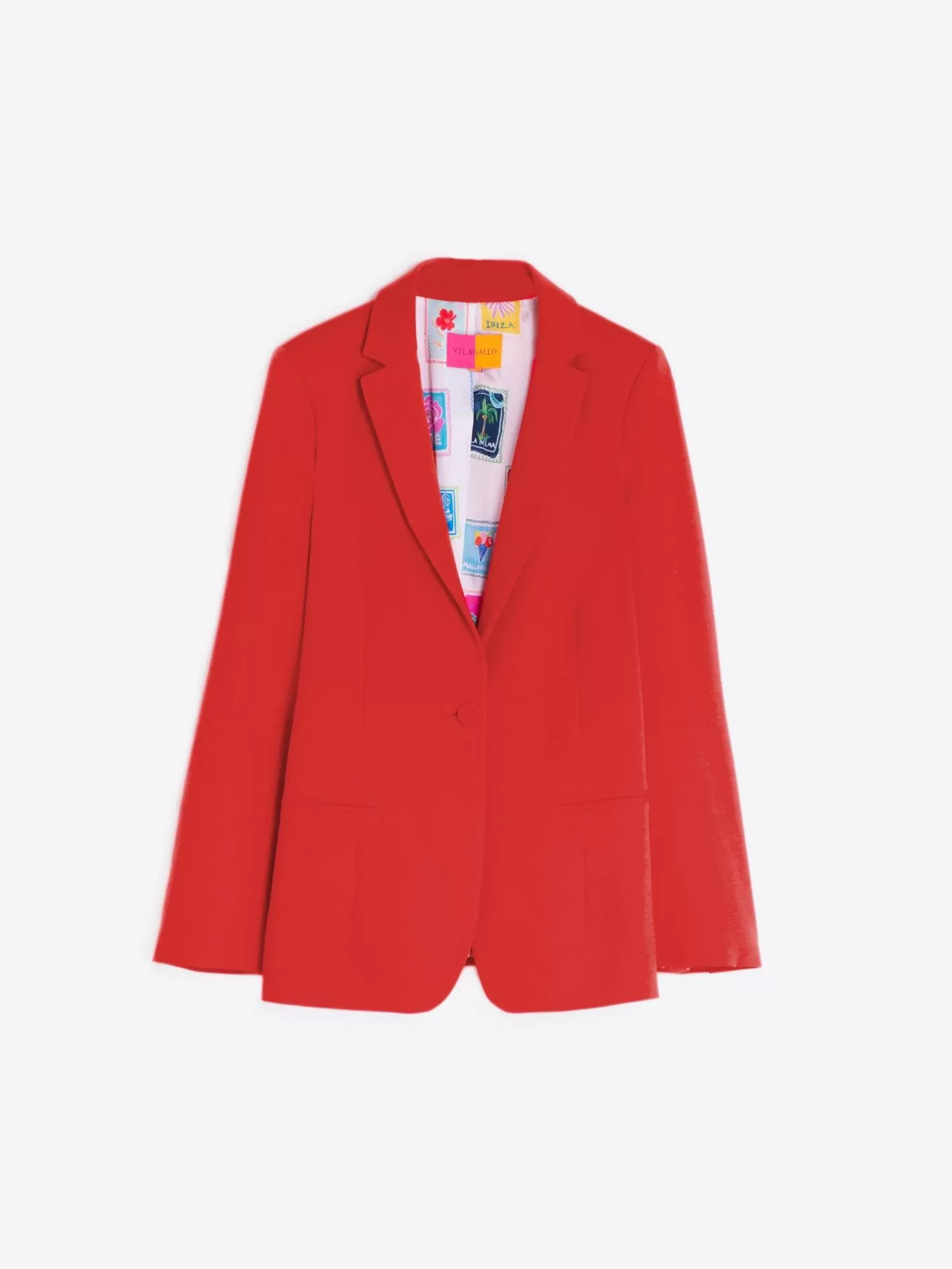 Chaqueta Coral De Tejido Y Forro Elásticos.Forro Interior Con Estampado Exclusivo Vilagallo. Bolsillos De Vivo. Botón Delantero. La Modelo Utiliza La Talla 38.