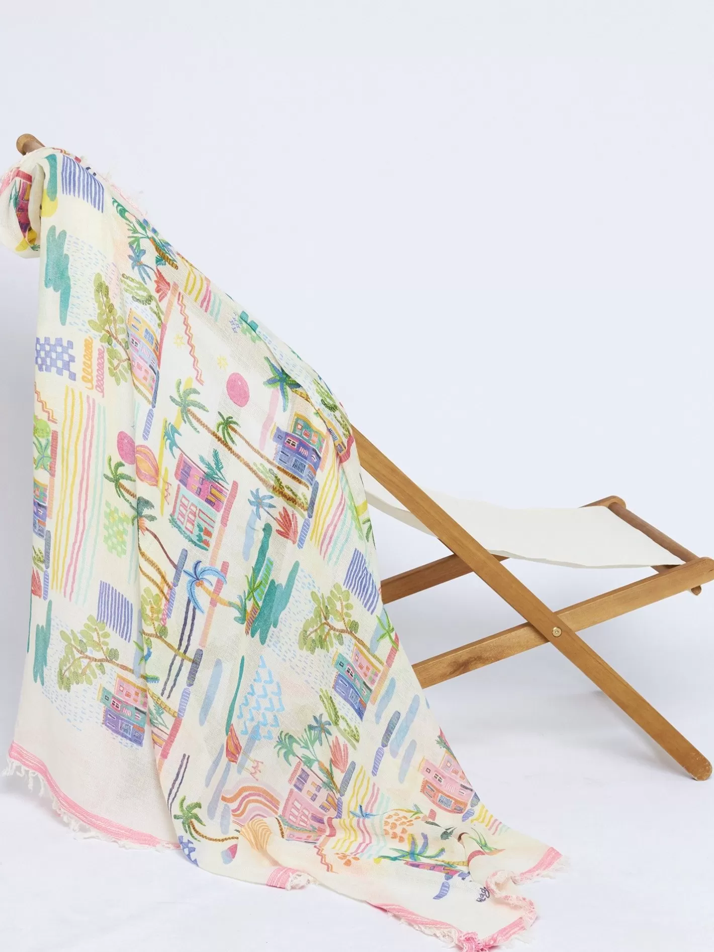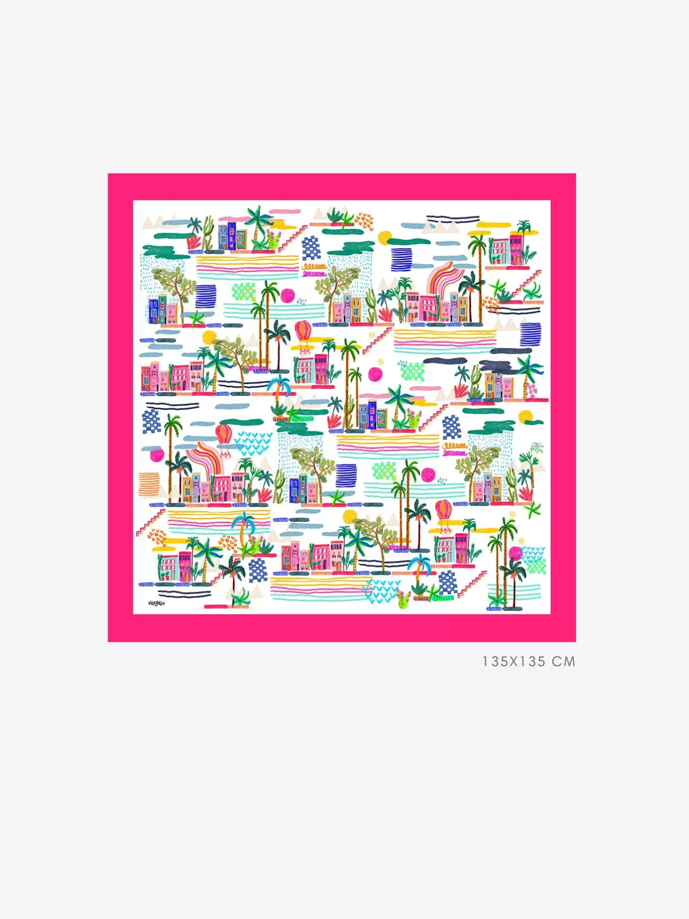 Pañuelo De Algodón Casitas De Verano. Medida: 135 X 135 Cm.