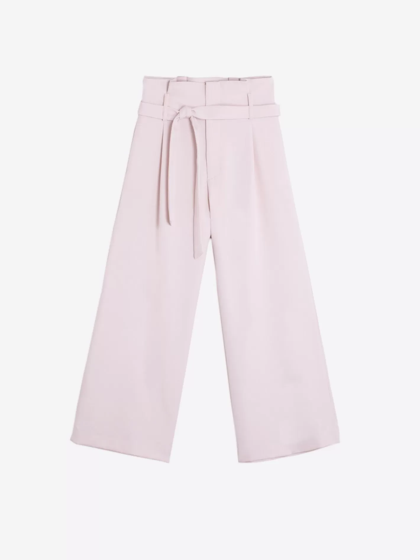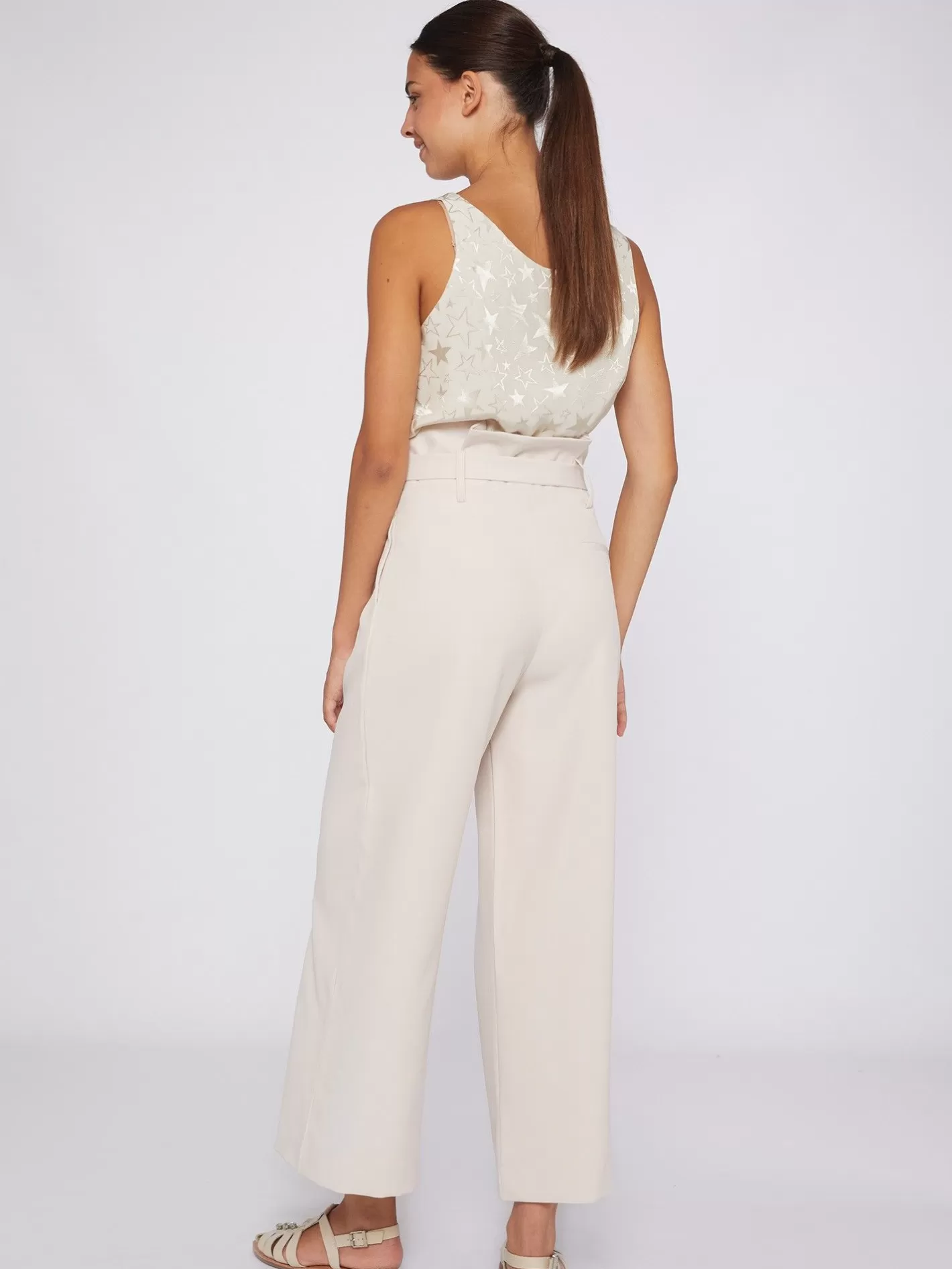 Pantalón Beige De Tiro Alto Con Pierna Ancha. Tejido Fluido.