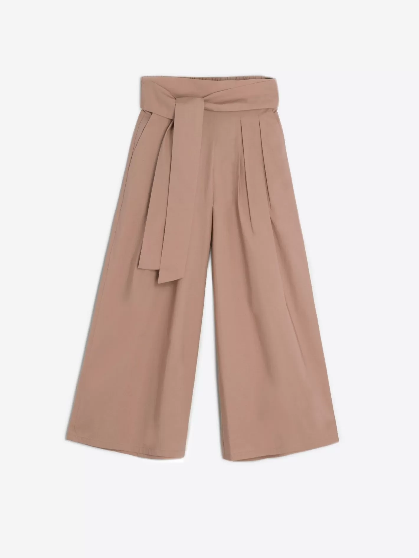 Pantalón Beige De Tiro Alto Con Pierna Ancha. Cinturón Extraible. Diseño Exclusivo Vilagallo.