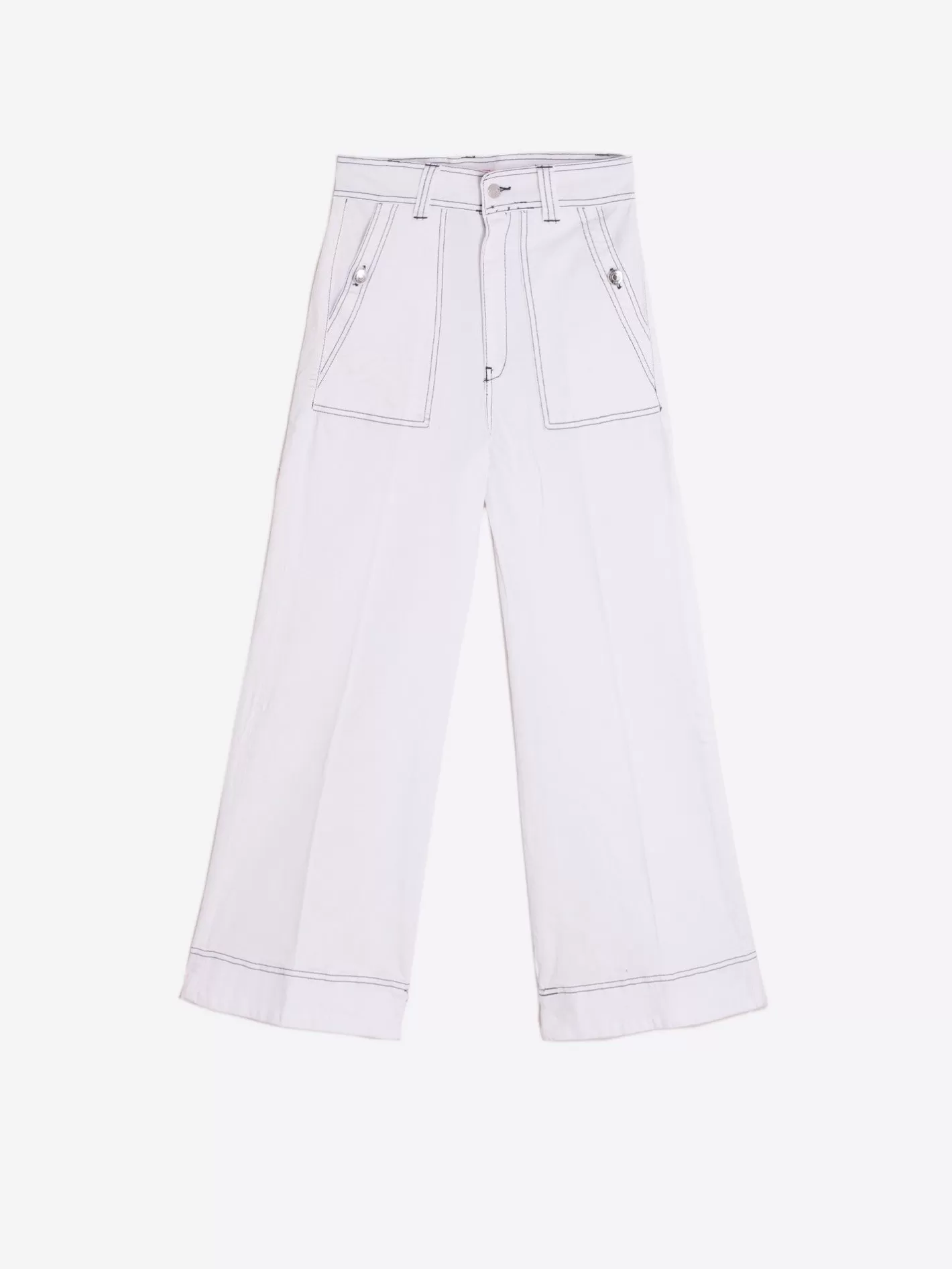 Pantalón Denim Blanco . Pierna Ancha Y Tiro Alto. Nuevo Tejido Elástico, Extra Comfort Perfect Fit. Bolsillos Delanteros Y Traseros Y Botones En Plata. Tinte Eco Que Reduce El Consumo De Agua A 1 Litro Frente A 12L De La Tintura Tradicional Limitando A La Mitad La Utilización De Químicos. Se Reduce La Huella De Carbono Al Hacerse El Proceso En Frío. Se Transporta El Colorante Por Nebulización Consiguiendo Un Proceso Más Sostenible