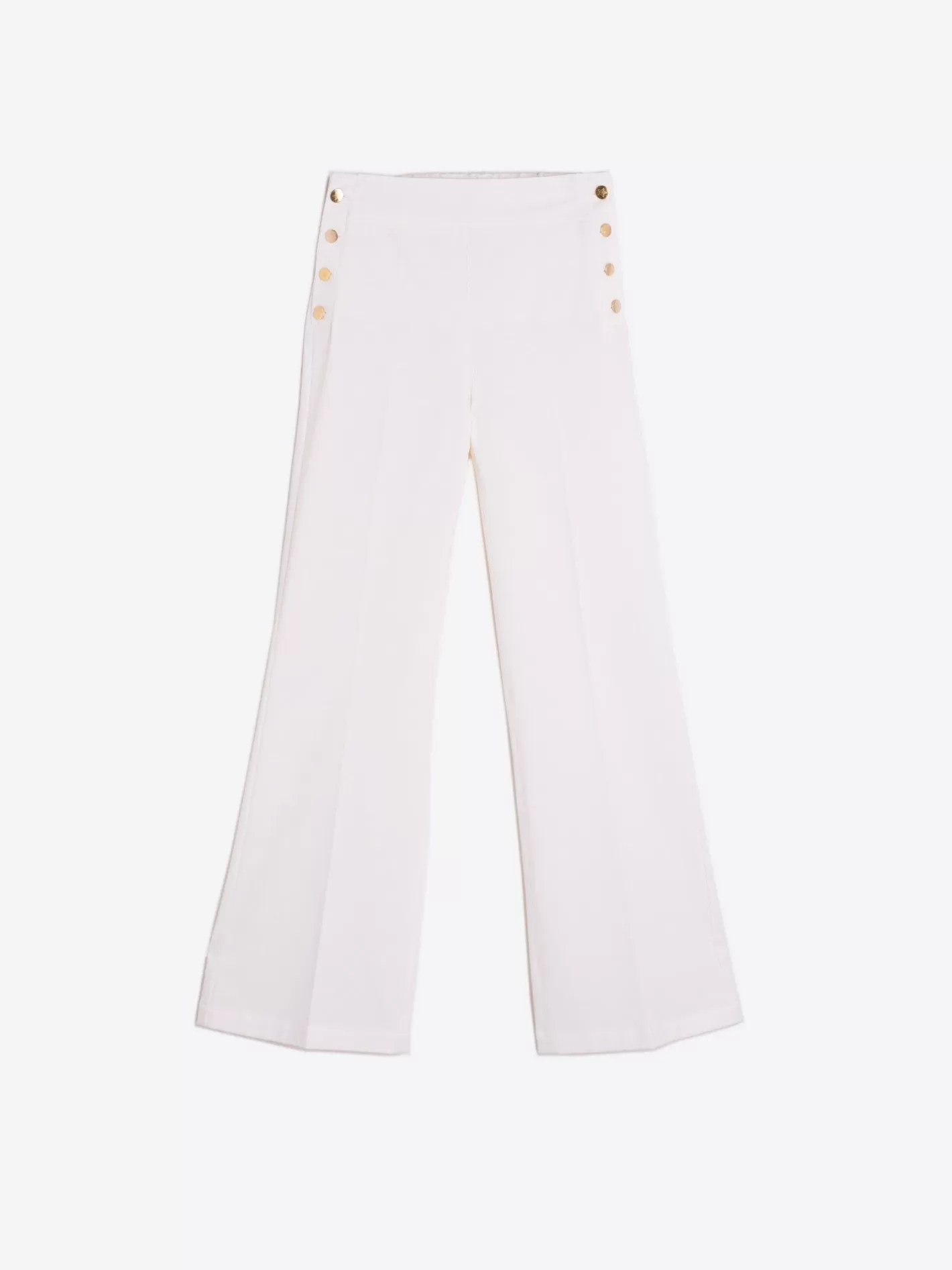 Pantalon De Punto Elastico Blanco. Tiro Alto. Cierre Mediante Botones Lateres. Cinturilla Elastica. Ligeramente Acampanado.