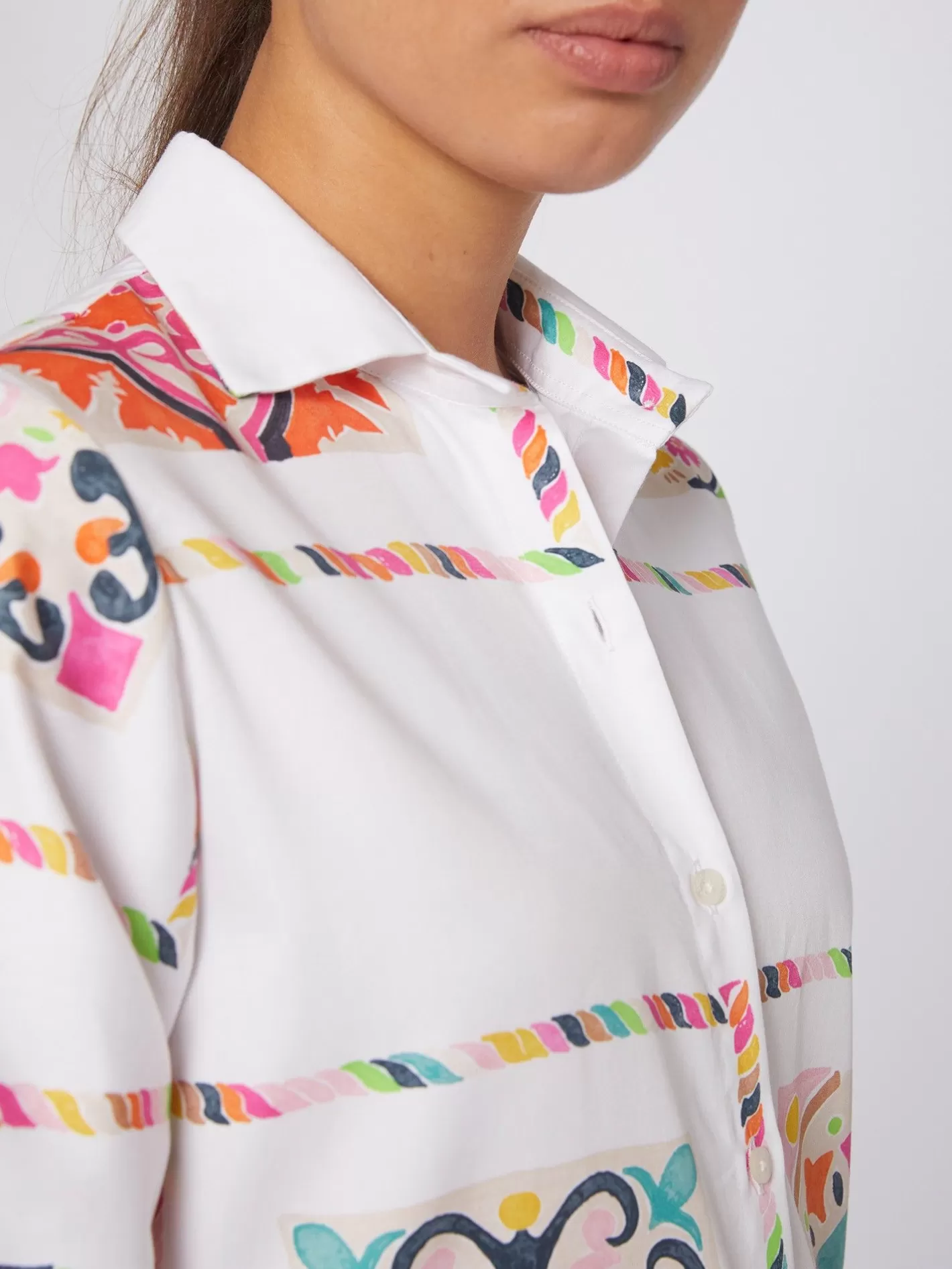 Vestido Midi De Algodón Con Estampado De Mosaicos Florares. Cuello Y Puños Camiseros. Cinturón Extraíble Para Lazada…