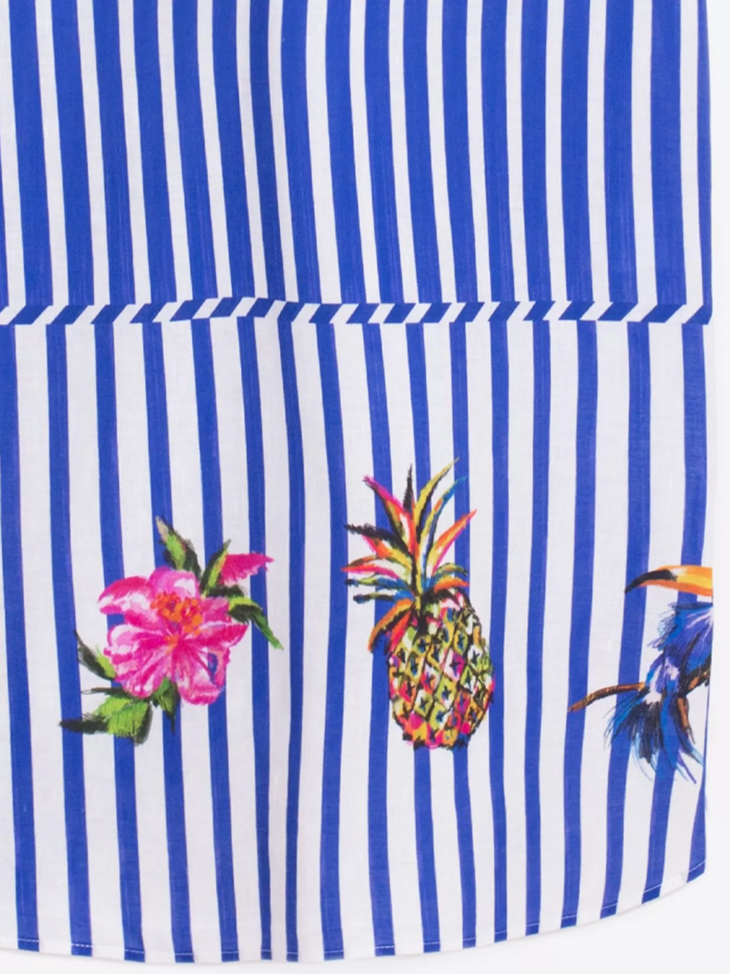 Vestido Camisero 100% De Lino Con Rayas Verticales Y Estampados Tropicales. Tejido Fluido Exclusivo Vilagallo Estampado …