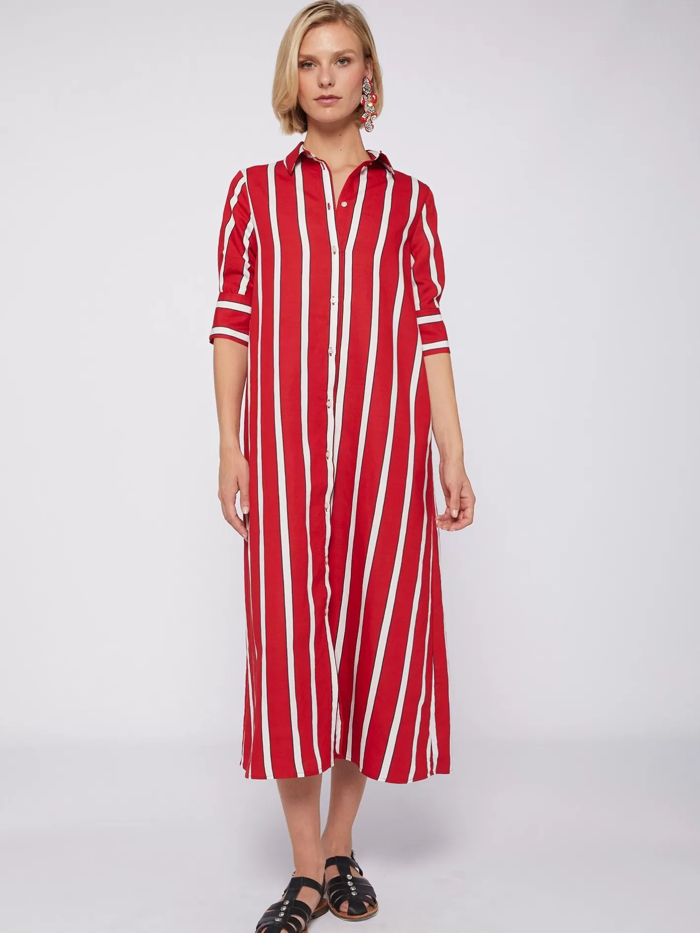 Vestidos | Vilagallo Vestido Midi Camisero Rayas Rojo